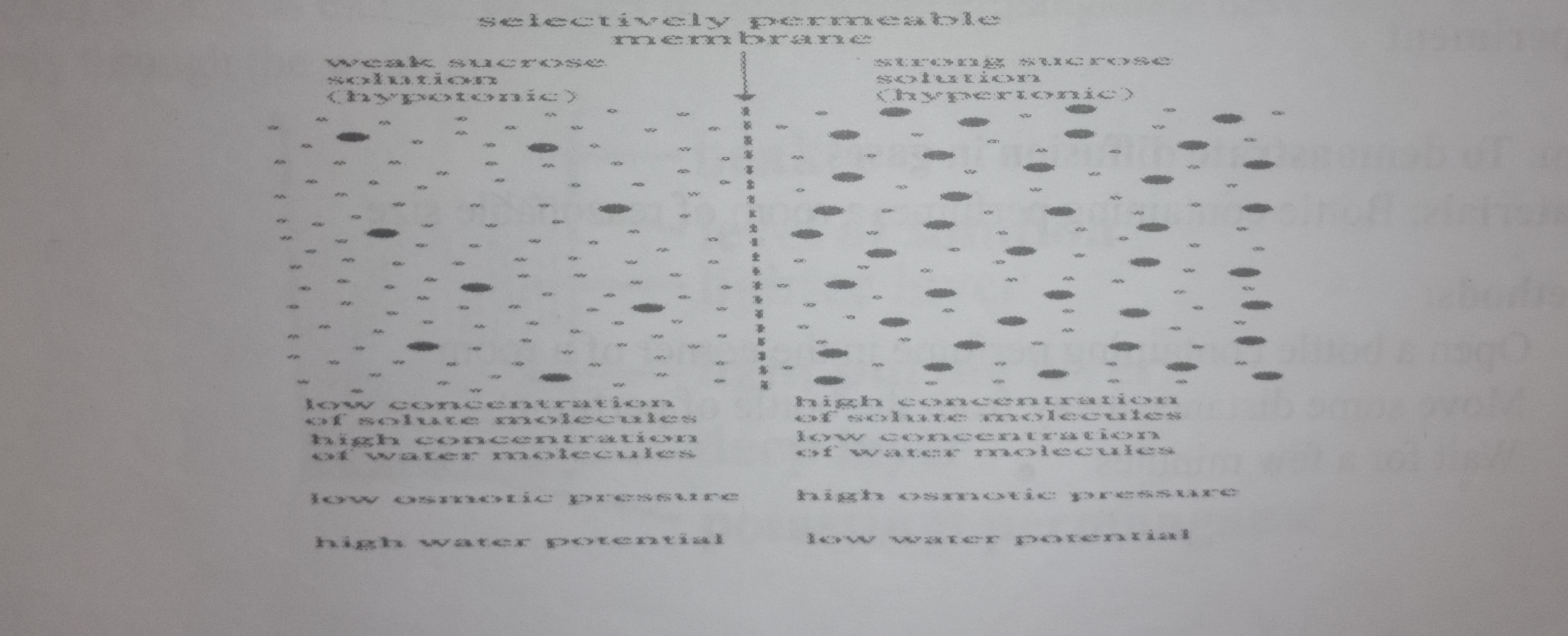 Osmosis is the movement of solvent molecules from a dilute solution across a semi- permeable membrane to a more concentrated solution till a dynamic equilib- rium is established when the concentrations at the two sides of the semi-permeable membrane are equal