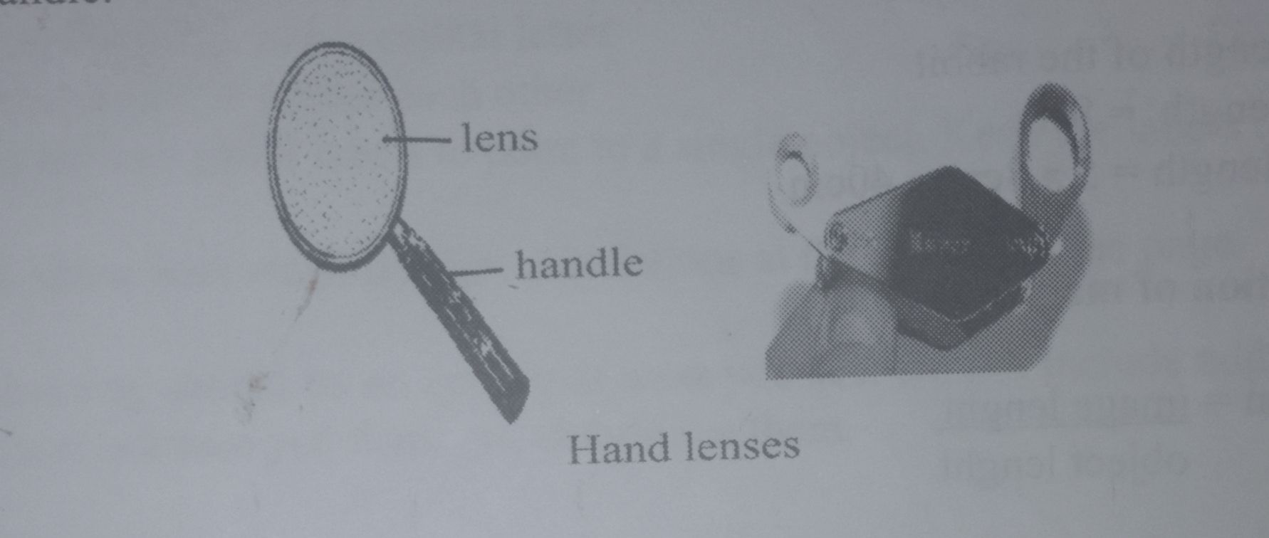 A magnifying glass (called a hand lens) is a convex lens that is used to produce a magnified image of an object. The lens is usually mounted in a frame with a handle.